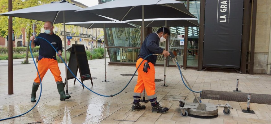 Afin d’anticiper la réouverture prochaine et progressive des restaurants et des bars, nos équipes Propreté réalisent un grand lavage et décapage des terrasses des établissements du coeur de ville. L’action de nettoyage a débuté ce lundi 26 avril 2021 et devrait se terminer avant le 19 mai 2021(date de réouverture progressive envisagée).