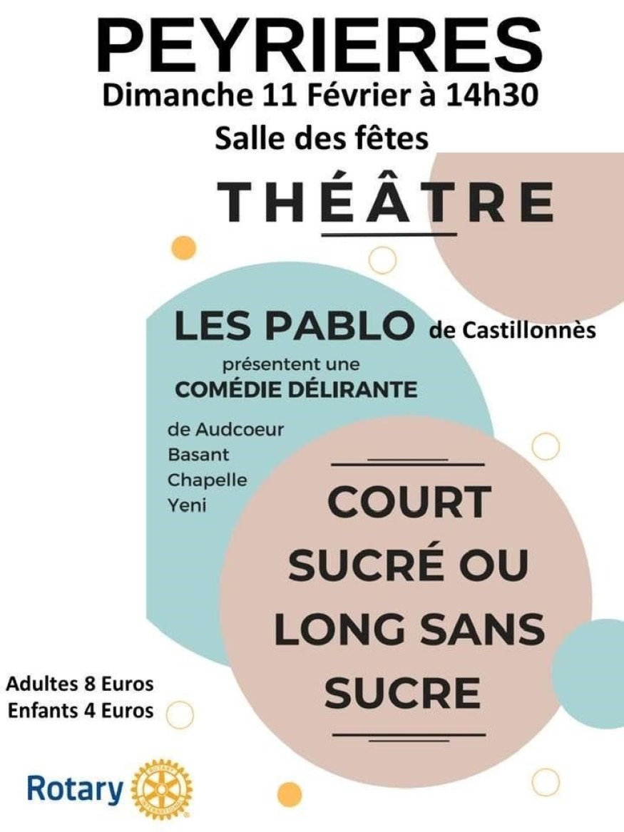La prochaine action en date sera dimanche 11 février 2024 à Peyrière, pour une matinée théâtrale visant à aider une jeune association à financer un voyage d’enfants autistes à Paris pour voir les préparatifs des J.O.2024.