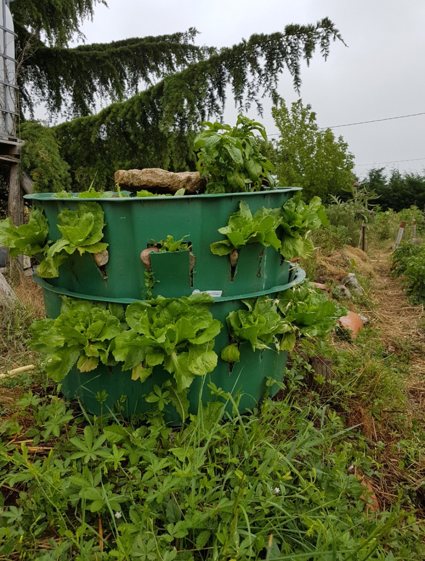 L'idée était principalement destinée aux petits jardins. Accessoirement, un bar à salade est également une façon de mettre hors de portée des limaces un de leurs mets préférés. Mis en place à l'occasion du dernier atelier sur le bokashi et les micro éléments efficaces, comme vous le verrez sur la photo ci-jointe, l'expérience est réussie et sera renouvellée.