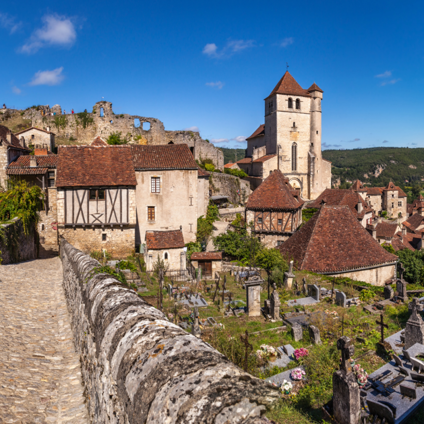 Niché au sommet de la falaise, le village de Saint-Cirq-Lapopie vous plonge au coeur de cette ambiance médiévale bordé par ses ruelles et ses jardins intimes. Classé parmi les plus beaux villages de France avec ces treize édifices protégés au titre des Monuments historiques, vous serez séduit par son histoire et son patrimoine, entre maisons datant du XIIe siècle au XVe siècles et leurs arcades marchandes, les vestiges de son château seigneurial ou les nombreuses échoppes qui animent son centre-ville.