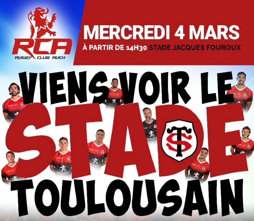 Demain, dès 14 heures, le RCA accueille au stade Jacques Fouroux le club Toulousain pour un entrainement, ouvert au public . Séance de dédicaces, selfies et échanges de sourires garantis !! Gratuit, ouvert à toutes et tous ! Buvette et petite restauration sur place.