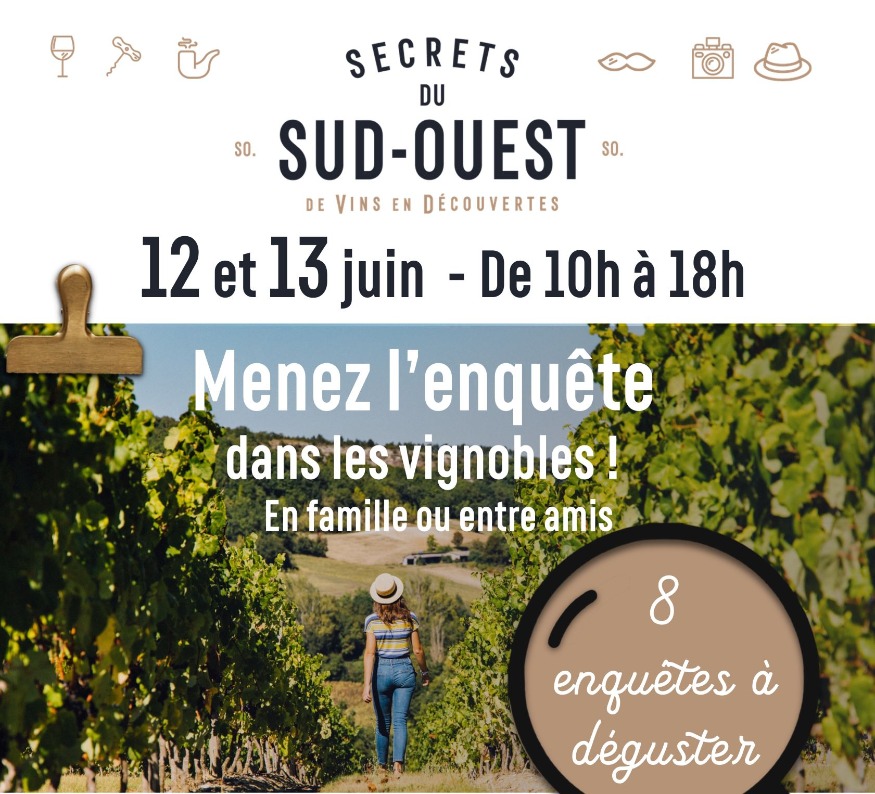 Grâce au roadbook téléchargeable sur le site web www.secretsdusudouest.fr, les participants sont invités à emprunter le samedi et/ou le dimanche l’un des 8 circuits d’enquête proposés dans les six appellations (1), à bord de leur voiture ou d’un vélo électrique. Ils partiront à la rencontre des pépites vinicoles de la région.