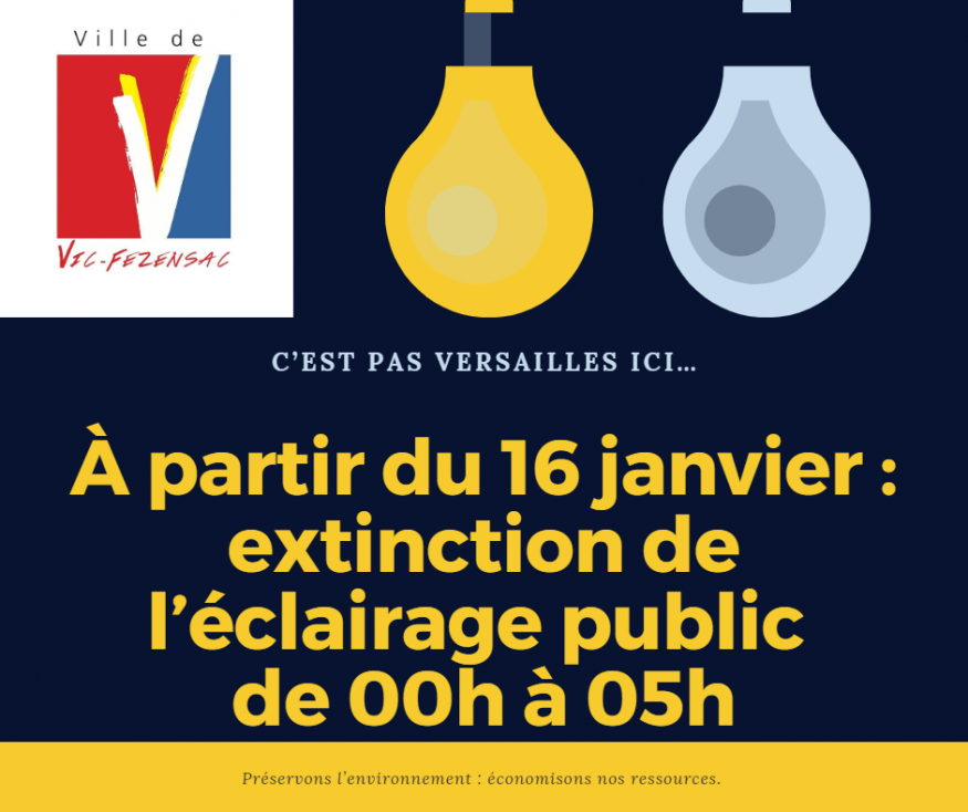 À Vic-Fezensac, l’extinction de l’éclairage public la nuit est prévu à partir du 16 janvier 2023, tous les jours entre minuit et 5h du matin.