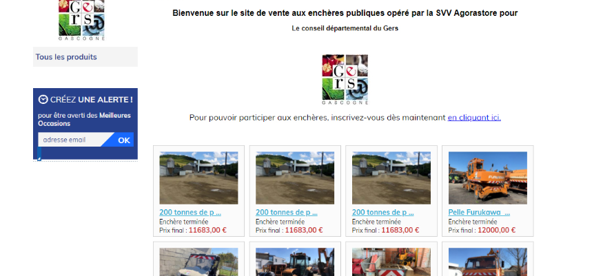 Le Département du Gers lance une vente aux enchères sur le web via le site de courtage « Agorastore ».