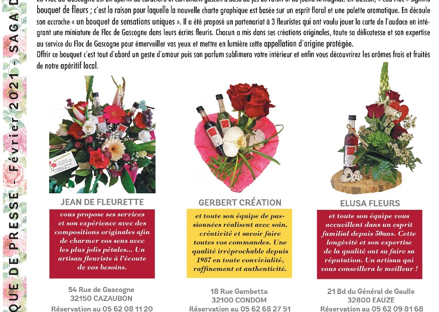 Le Floc de Gascogne met en place une opération de promotion à l’occasion de la Saint Valentin, le Dimanche 14 Février. La Saint Valentin ou la magie romantique... Les bouquets sont le cadeau le plus plebiscité, ils vont souvent de pair avec la journée des amoureux. DE FLOC DE GASCOGNE AUX PÉTALES
