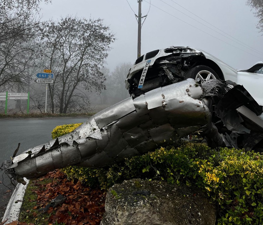 L’œuvre, sculptée avec l’aide des élèves de l’institut médico-éducatif de Fongrave, était exposée sur ce giratoire depuis le début des années 2010 et rappelait le mythe de la prise de Troie.