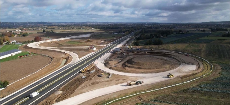 Sur l’A62, VINCI Autoroutes poursuit les travaux du futur échangeur d’Agen-Ouest, situé sur les communes de Brax, de Roquefort et de Sainte-Colombe-en-Bruilhois, avec pour objectif une
