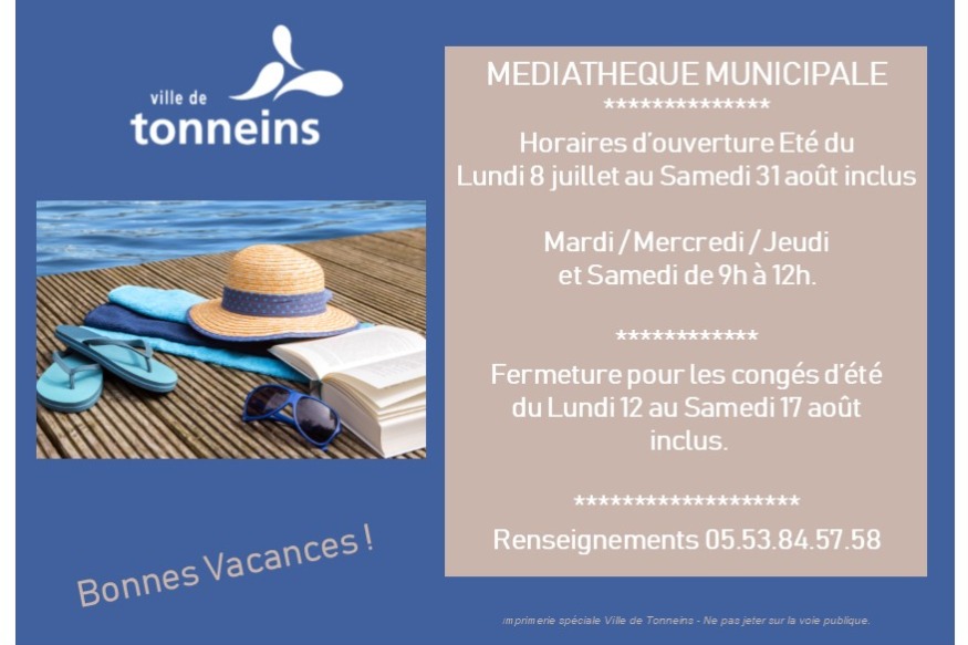 la Médiathèque de la ville de Tonneins passe en Horaires d’été