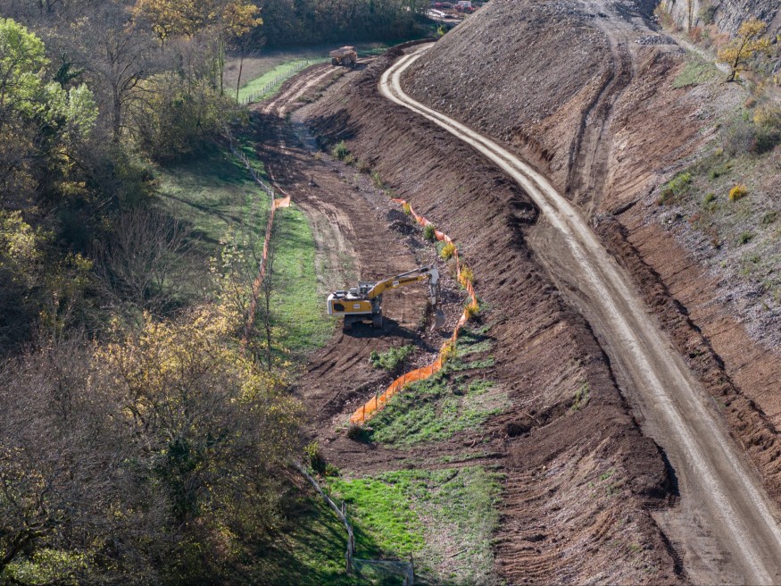 Les terrassements sont en cours avec, en parallèle, la construction d’ouvrages hydrauliques permettant d’assurer l’écoulement des eaux pluviales sous le nouveau tracé.